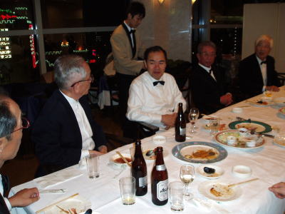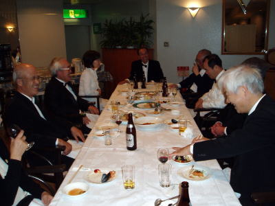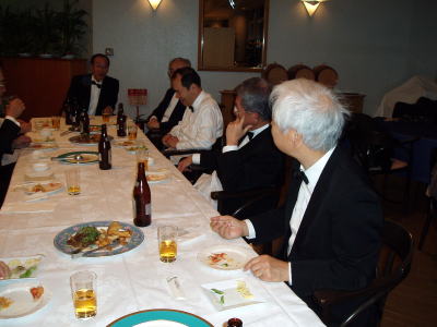 | ああ、やれやれ。感動のうちにアッという間に過ぎていきました。反省会を兼ねての打ち上げです。皆さん充実感一杯のご様子です。一仕事終え、達成感と安堵に似た落ち着きが感じられます。これも、1万人で第九を合唱した余韻ではないでしょうか。 | LSC関西支部第九合唱団の団長 井藤正治さんのもと、すでに来年の構想が語り合われています。井藤さん曰く「来年は、20人以上参加して貰って、LSC関西支部第九合唱団として参加出来たらなあ。」 このホームページをご覧のLSCの皆様、来年は一緒に参加しませんか。 |