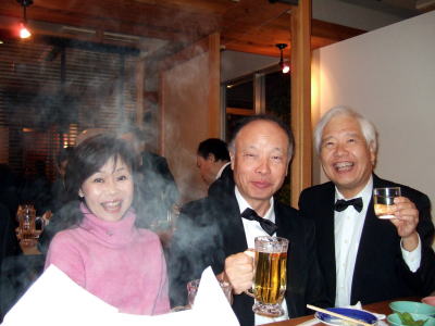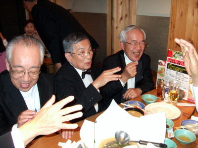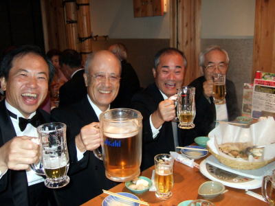 そして、今年のオーケストラも10本のコントラバスを有するフルバンドで、しっかりとした音輪を出し、最高でした。 合唱団は今回も小学一年生の子供から、93歳のおばあちゃんまで、元気一杯の参加でした。 さて、我々LSC会員の15名も広い会場では何処で歌っているのか、皆目判らない。公演本番が終わって 打ち上げ会場に行く為指定の落ち合い場所で会った時が初めて緊張が解き放される瞬間でした。 さぁ〜飲むぞ! 食べるぞ〜! ◆ マッキーこと 槇原 敬之(まきはら のりゆき)と「世界に一つだけの花(smapの楽曲)」をコラボしました。 毎年 若いミュージシャンを招いて(2007年は中島美嘉、2008年はケミストリー)楽しみます。今年は槇原敬之でした。指揮者の佐渡裕さんが槇原と、広島と長崎に原子爆弾が投下されて60年の節目となった2005年に、平和を祈って開催された<平和巡礼2005>のイベントで共演した関係で佐渡さんが希望してようです。 槇原敬之は私(天野)が住んでいる大阪・高槻の出身者で我が息子と同学年でした。そんな関係もあって私も少なからず、楽しみを持ってこの日を迎えていました。 また、偶然にも彼が高校時代、音楽の先生として指導していた合唱指導の清原先生と20年ぶりにこの会場で再会し、旧交を温めあっていた。 彼って大変な人気者なのですね。歌だけでなく、マッキーのトークは、佐渡さんや司会の小倉智昭さんらとの息もぴったりで 最高に盛り上がっていました。 第一部が終わったあと、休憩時間になっても鳴り止まない拍手にマッキーが再び舞台に呼び戻されて大喝采を浴びていました。 普通、カーテンコールは第2部が終わったところなのにね・・・ ◆当日の出演者 マッキー以外 総監督:指揮 佐渡 裕 ゲスト :古川 展生(チェロ) 大阪府立淀川工科高等学校吹奏楽部 スーパーキッズ・オーケストラ ソリスト: 田村 麻子 (ソプラノ) 福原 寿美枝 (メゾ・ソプラノ) 吉田 浩之 (テノール) キュウ・ウォン・ハン(バリトン) コンサートマスター: ウェイ・ルー(ベルリン・ドイツ交響楽団) 管弦楽 :1万人の第九オーケストラ( 兵庫芸術文化センター管弦楽団を中心に関西のプロ・アマの混成) 合唱 :1万人の第九合唱団(一万人分の15名が我々です) 司会 :小倉 智昭 松本麻衣子(MBSアナウンサー) ◆当日のテレビ放映は2009年12月23日(祝)16時00時〜16時54分(予定) ネット局 毎日放送(MBS)東京放送(TBS)、北海道放送(HBC)、中部日本放送(CBC)、RKB毎日放送(RKB)、 TBS系列5局ネットで放送 みんな見てね!ひょっとして 顔なじみが映っているかも。 <打ち上げ会場で> ![]() フロイデ!! 会場は久しぶりに、以前懇親会でお世話になっていた大阪北新地の「つぼ八」でした。 会員以外の練習仲間も加わって、17名が興奮冷めやまない状態でまたまたもりあげりました。