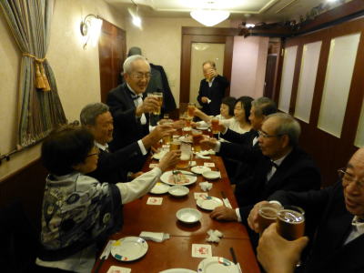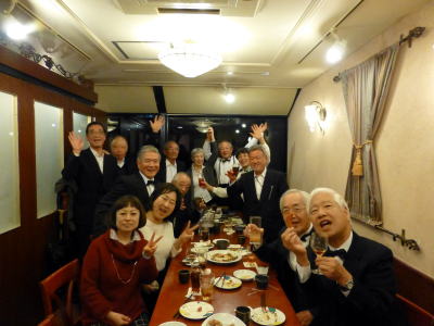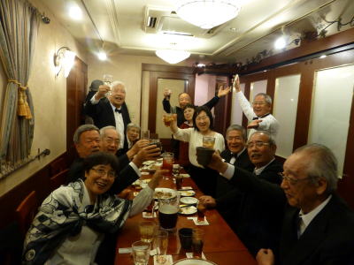 楽しかった2時間があっという間に過ぎ、再度の乾杯、全員での記念撮影の後、来年の再会を約束してお開きとなりました。 記録:青田 文男 |