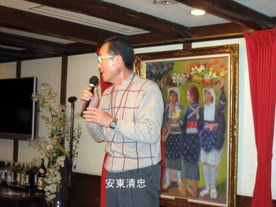 | 幹事の安東清忠さんから開会宣言 皆さん乾杯の予行演習は終わったようなので、本番の乾杯です。 |