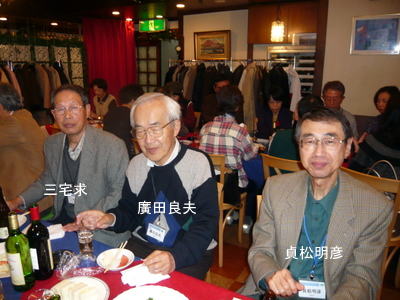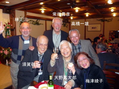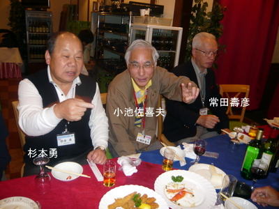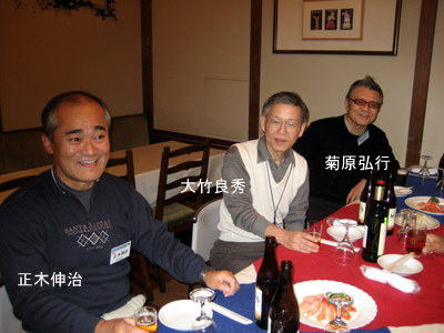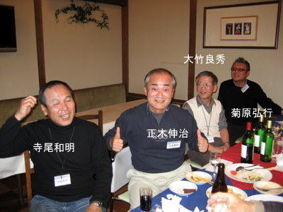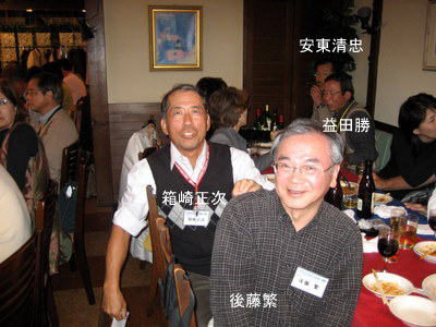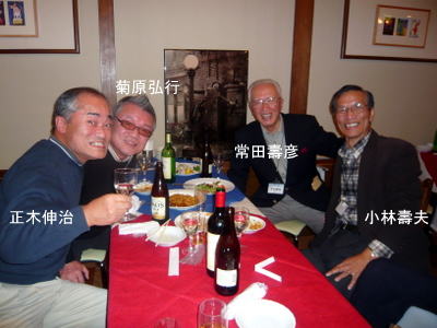 | 吉崎さんは、今日仕事を終えられ、急遽懇親会に駆けつけて下さいました。 | 関東の重鎮 梅津さんと、中部の重鎮 鈴木さん いずれも遠方から駆けつけて下さり有り難うございます。 |