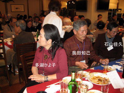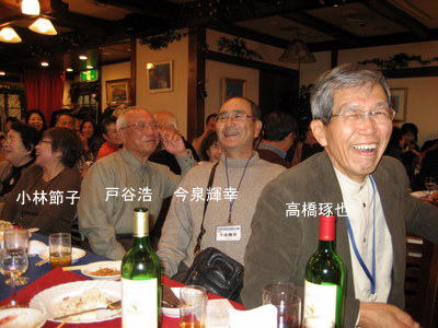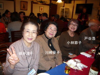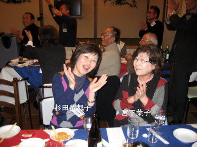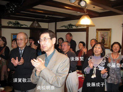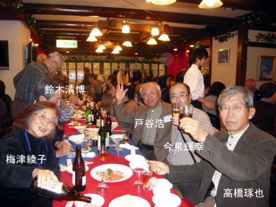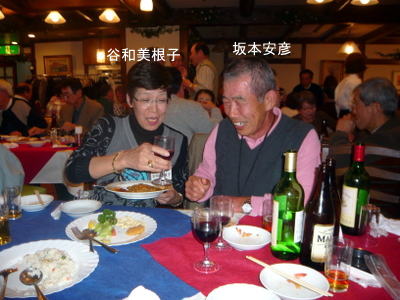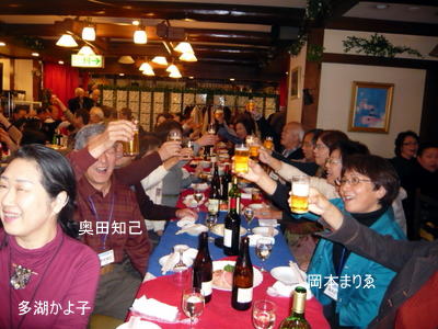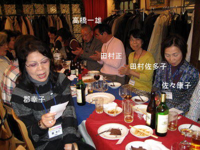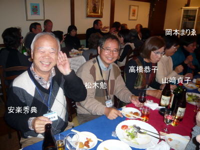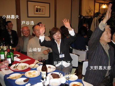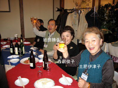 | 郡さんご夫妻は、いつも岐阜から駆けつけて下さいます。佐々康子さんは、晴れてリタイアされ今回が初めての参加。 | こちらも負けじと乾杯!! | |