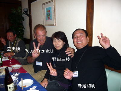 | 岩田さん、英会話同好会の推進ご苦労様でございます。懇談会での、英語の歌、楽しかったですよ。 | ピーターさんは、オーストラリアから駆けつけて下さいました。野田さんのご友人です。LSC関西もグローバルになりました。!! | |