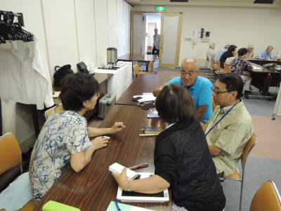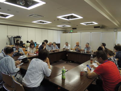 | 分科会「旅行目論見、企画」 会議室が騒々しいので会場外の待合室で場所変更 |