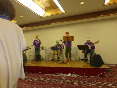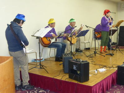 | 定番 ケイオンズの演奏です | 左 土橋さんが、今回から復帰。アドリブの演奏が 入り、音楽に味が出てきました。 |