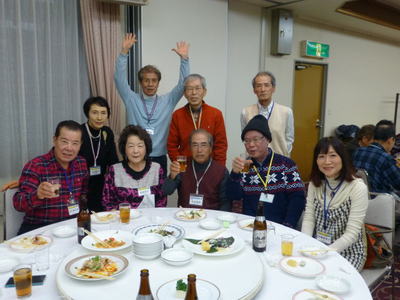 | 右 坂田さん、左 井藤さん | 後ろ左より 白神さん、盛岡さん、青田さん、武藤さん、平田さん、浅原さん 前左より 佐藤さん、吉村さん、岸野さん このグループ、ひょっとしてスペイン・ポルトガルドライブ旅行グループかな? |