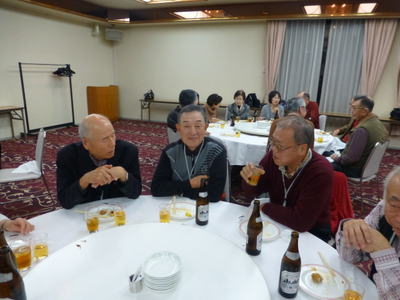 | 左 藤津さんは、右 井藤さんの紹介で来年1月に入会されます | 左から 宗村さん、安田さん、林さん ゴルフ談議に花が咲きます | |