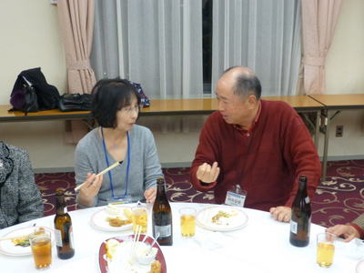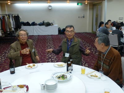 | 左から 花岡さん、水間さん、山アさん | 左 浅原さん、右 新会員初参加の金振さん | |