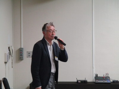 | 幹事の堀口さんが開会宣言 | 白神支部長がご挨拶と午前中に行われた関西支部運営会議の報告などをされました | ||
