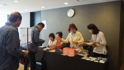 | 当日の受付前です。今回は、大阪和歌山ブロックの幹事で同ブロックの女性陣が奮闘です。 | |||