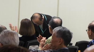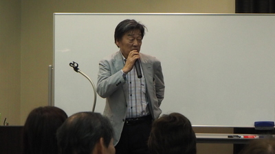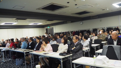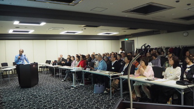 | 今期関西新支部長の山田さんがご挨拶 | 熱心に聞き入る会場の皆さん。満員御礼です。 | ||