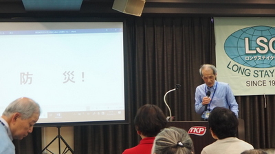 山田さんが、「OSAKA 防災タイムアタック」と題して 災害時の対策をクイズ形式で講演されました |