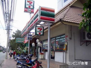 | 6 コンビニが増えた 5年前チェンマイへ初めて来た時は「地方都市」という印象が強かった。その印象は年とともに変化してゆき、着実に大都市へと変貌をとげつつある。5年前は珍しかったコンビニが至るところに出現し、私の散歩コースだけでも10軒は下らない。若者の24時間化が進んでいる証拠であろう。中でもセブンイレブンの勢いは絶大で、およそ10軒に9軒は占めている。 ![]() 以前は見られなかった徹夜で飲み・語り明かす学生の姿を今年は初めて見た。朝散歩しているとき明らかに徹夜と判るグループが語り明かしているのに出会った。彼らが語り明かすのは路上であったり、コンビニの店頭やレストランの屋外席の無断借用であったりする。こうした行動を支えているのもコンビニなのであろう。 コンビニの品揃えは日本と良く似ているが、まだまだ日本のようなきめ細かさは感じられない。タイの外食文化を支えてきたのは圧倒的に屋台である。特に早朝は屋台の独断場であった。ここにコンビニが割り込んでくればチェンマイの朝の風景は10年を待たずして確実に変化してゆくのだろう。事実若者がコンビニの前で飲食している姿が散見されるようになった。 |