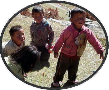 昼食に、今日の宿の村々に着くと「ナマステ」「ナマステ」あちこちから声が行き交う。恥ずかしそうに、はだしで、鼻水たらしながら、子供達が挨拶してくれる。キャンディを貰おうという魂胆もあるらしい。キャンディ1個出すと、あちこちからびっくりする程子供が群がり集まる。子供の頃「ギブミー、チョコ」と言って先生に叱られたと懐かしんでいる人もいたが・・・。数十年前(50年くらい?)の日本の子供達と一緒だ。
