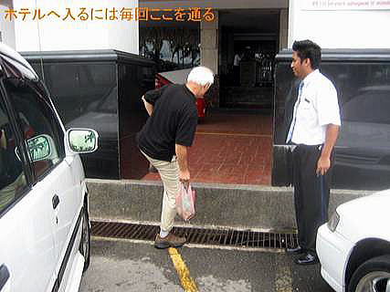 A コタキナバルで泊ったプロムナードホテルは4ツ星の立派なホテルである。道路に面して建っているが道路からこのホテルに入るための歩道は皆無で、宿泊客は写真のような高い段差を跨いでホテルに入るか、或いは少し遠回りして車道を歩いて入るしかない。