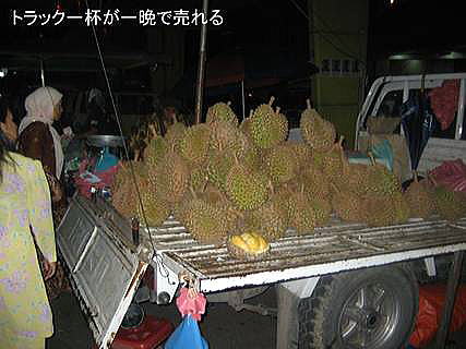 ドリアンは辛党には要注意である。詳しい理屈は判らないがお酒を飲んでドリアンを食べると、アルコールと反応して大量のガスが発生し、お腹がパンパンに膨れて危険になるとのこと。従ってドリアンを食べるときは酒は飲めない。同行したメンバーの一人は辛党でアルコールを優先し、我々が美味しそうに食べる横で指を銜える羽目になった。お気の毒!