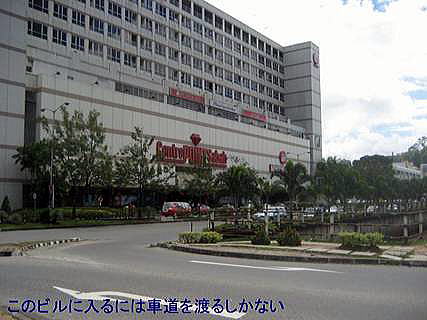 B コタキナバル中心街にセンターポイントという大きなショッピングモールがある。道路に面しているが玄関の辺りは全て車道で歩道は全くない。反対側の道路からも横断歩道はなく、当然車道を横切って渡るしかない。