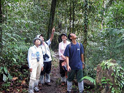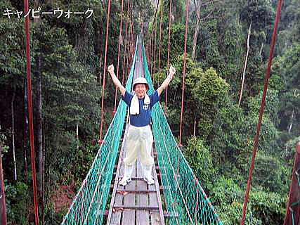 数多くの動植物がガイドの解説付きで観察出来、熱帯雨林の醍醐味が楽しめる。地上27mのところに設置されたキャノピーウォークからの眺めは素晴らしく、特に野生のオランウータンやサイ鳥が観察出来たのは収穫であった。