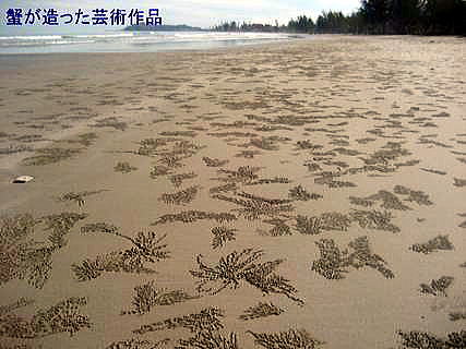 散歩していると無数の蟹が忙しく走り回っている。体長3cmくらいの小さな蟹だがその走りの速いこと!速いこと!目見当で10km/hくらいのスピードだろう。もし、身長170cmの人間がこのスピードで走ると仮定すると(170cm÷3cm)×10km/h=560km/hで走ることになる。蟹の足は10本、人間は4本でこれを勘案すると560km/h×10分の4=220km/hとなり、新幹線くらいのスピードとなる。