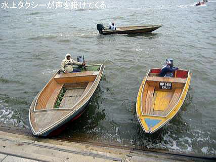 水上集落の足は船しかなく、無数の水上タクシーが猛スピードで走り回っている。よく事故が起きないものだと感心する。水上生活者も車の所有者は多い。彼らは対岸に駐車して、駐車場と住宅の間は水上タクシーを利用する。