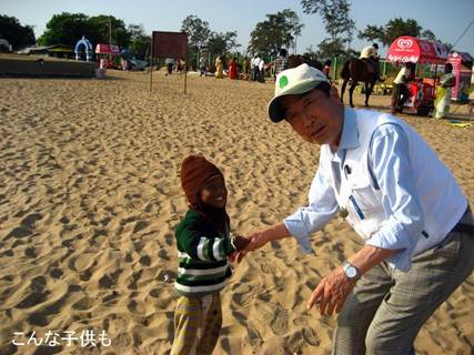 | インドに限らずどこの国でも子供との接触は実に楽しい。子供達がいるとこちらから積極的に声を掛けるが、インドではこちらが声を掛けるまでもなく、実に積極的に接触してくる。この風景は日本とは大きく異なる。 子供が集団の時は全く恥じらいの表情は見せないが、個人だと恥じらいの表情を見せる子供もいる。これはどこの国も同じ。その場合インドでは親が子供をけしかけて子供を我々外国人の方に押しやっている。親は子供の教育の一環と思っているのであろう。お陰でこちらは安心して子供と接触出来る。 |