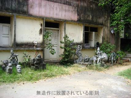 インドは仏教・ヒンドゥ教発祥の地に相応しくエローラ・アジャンタなどの見事な石窟がある。南部はマドゥライのミーナークシー寺院に代表されるドラヴィダ様式が中心だがここでも数々の仏像や神像が残されている。 チェンナイで博物館に行った。建物も老朽化していて、随所で修復工事が行われていた。展示もぞんざいで、屋外には彫刻が無造作に放置され風雨に晒されていた。これらの像の歴史的、芸術的な価値は門外漢では判り兼ねるが、少なくとも日本では殆ど視られない光景ではある。 言うまでもないが、展示も管理もきっちりと行われている博物館や美術館もあり、全てがいい加減というわけではない。 |