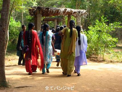 | インドで女性の服といえば殆どの人が「サリー」と思うだろう。正解である。しかし南インドではサリーに匹敵するか凌駕するのが「パンジャビ」である。南インドではパンジャビが3分の2で残りがサリーという感じ。 サリーは長さ5mくらいの布をペチコートに挟みながら腰に巻き、残りの布を肩の上に廻す。19世紀後半頃からインドに定着した服装である。 一方パンジャビはパンツとドレスの組合せでサリーと比べると活動的。ドレスの上からスカーフ(ドゥパッタ)を掛ける。どの女性もドレス・パンツ・ドゥパッタのカラーコーディネイトが出来ているが、これは予めセットされたものを売っているため。勿論自分で選んで作ることも可能。 |