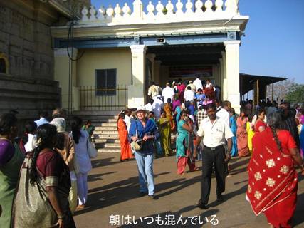 | 民主党政権になって「セーフティネット」がもてはやされている。インドやタイ、ミャンマーでもお寺がその役割の一部を果たしている。これらの国は肥沃な大地を擁しもともと食料は豊富な国であり、その分配が上手く機能していないだけなのである。貧しい人でもお寺に駆け込めば餓え死にする心配はない。そこは砂漠の国や北朝鮮など国全体が食料不足の国とは決定的に違う点であろう。 マドゥライという街にミナークシー寺院がある。南インドを代表するドラヴィダ様式の見事なヒンドゥ寺院である。この寺院は南部に分布しているタミル人の聖地で毎日1万人以上が巡礼に訪れる。 たまたま昼前に訪れたら、多くの貧しい人たちが12時からの給食を待っていた。 因みにこの寺院は12時から2時まで閉鎖され、貧者の給食タイムとなっている。 |