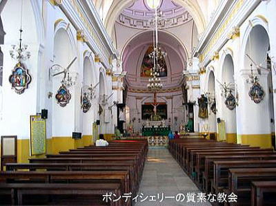 「バンガロールはインドではない」と書いたが、もう一つ「インドでない町」に出くわした。チェンナイの約140km南、ベンガル湾に面した小さな町「ポンディシェリー」である。 この町は1674年からインド独立7年後の1954年までフランスの植民地であった。途中オランダに1回(4年間)、イギリスに2回(延べ13年間)占領されたが、330年以上一貫してフランスが統治してきた。そのため町の中心部の佇まいはフランスの臭いが濃厚で、とてもインドの町とは思えない。 この町の近郊にオーロヴィル(Auroville)という集落がある。ここはオーロビンドというフランス人とマザー(オーロビンド夫人でインド人)が始めたユートピアつくりを、彼らが亡くなってからも今なお続けている。ここには海外40カ国から2000人の人が集まり、独特な活動を展開しながら人口20万人ほどのポンディシェリー住民に5000人ほどの雇用を提供して地域住民の生活向上に寄与している。この集落も当然のことながらインド離れをしているというか一種の新興宗教の雰囲気があり、ちょっと見の旅行者には理解し難い。(詳しくはwww.auroville.org) |