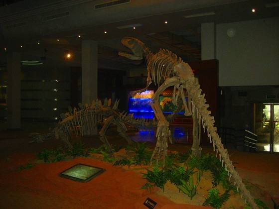 自貢市の塩に続く自慢は恐竜である。1986年に開館した自貢恐竜博物館はカナダの「ロイヤル・ティレル古生物学博物館」と「福井県立恐竜博物館」と並んで、世界の3大恐竜博物館と言われている。 福井の博物館は未だ見ていないが、自貢のは迫力満点で世界3大博物館の名に恥じない。展示物の大半は本物の化石で、レプリカは一部しかない。 それにしてもこれだけ完全な形で多数の恐竜化石が発見されたことは驚き以外の何物でもない。 展示よりも素晴らしかったのがガイド嬢。17時閉館だが我々の到着が閉館時間を20分程度過ぎたにも拘らず、ちゃんと待っていてくれ、流暢な日本語で熱心に説明してくれた。 しかも美人ということもあって参加者一同感激の面持ち。 中国では全般に「サービス精神」には大いに欠けるきらいがあるが、ここでのもてなしは中国の「変化の兆し」を感じさせてくれるものであった。 しかしその後の旅行でその「変化」は殆ど感じられず、期待を裏切られた。 |
