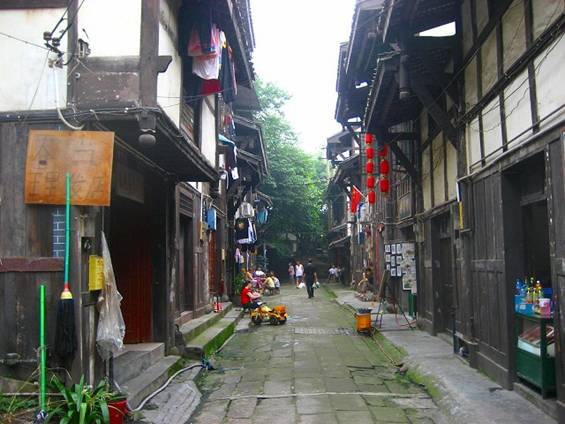 | 重慶近郊に磁器口という古い街並みが保存されている。1800年前に造られた町らしいが、特に栄えたのは明・清時代で特に清代末期は水上交通の要所として殷賑を極めた。 磁器口という地名からして港として栄えたことが窺える。 現在は古い町並みを目指して内外の観光客が押し寄せ、メイン通りは土産物屋や飲食店が軒を連ね、騒々しい観光地でしかない。しかし、少し町の外れの方へ行くと、 観光とは無縁の普段着の生活を見ることが出来る。古くて暗くてジメジメした感じの住宅が軒を連ね、決して快適な生活の場ではないと見受けた。 この辺りには役所のお達しが張り出され、町全体が順番に大規模な改修工事に取り掛かるようだ。そうすれば快適な生活の場は確保出来るのだろうが、観光客にとっては あまり魅力のない町に変貌するのであろう。 |