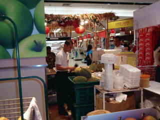 マレーシアの楽しみの一つに、ドリアンがあります。 店員が品物を運んできて、カットをし、パック詰めをしていました。 めぼしきお客が通ると、セールスにはいります。 グレードも10段階ぐらいはあるようです。 店先にグレード順に並べられています。 よいものは早くなくなると聞いていましたので、ハイグレードをチョイス。1パック45RM(リンギット)・約1500円。これは安い。 2人で2回食べられます。(食いしん坊は別。) お持ち帰りも完全密封してくれて、匂いがもれないようにも配慮。 タクシーでもモノレールでも、気を使わなくて済みます。 さてお味のほうは? つきなみな表現ですが、クリーミー、濃厚な上品な甘さ、チーズのようなトロミ。・・・・ とにかく美味い。 絶対食べないと損ですよ。 ![]() (杉本勇 記) |