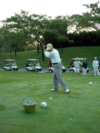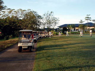 いよいよ待ちに待った、KL(クアラルンプール)オープンゴルフが始まりました。 14名の参加となりました。(写真+カメラマン) 日本で呼びかけても、これだけの人数は集まりませ。 KLの開放感が、人をひきつけるのでしょうか? スタート前で素振りをする、各地方代表の選手たちです。 カートも1人乗りと2人乗りがあります。 全コース カートに乗らない、健脚の方もおられました。 スルーで回ってから、成績発表・賞金の授与(プロ並み?)・昼食会・ 懇親会風景です。 「ここは長いわ。」「ノータッチはきついなぁ。」「ラフも結構きついでぇ。」「外国のゴルフ場は綺麗やね。」「健康の為のゴルフや。スコアは どうでもええ。(筆者の強がり)」 公式戦の2日目は2月11日です。 練習・調整不足の方々のために、特別2月9日を練習ラウンドとして設けました。 次は優勝して、賞金を獲得しましょう。(全員チャンス有り。) ![]() (杉本勇 記) |