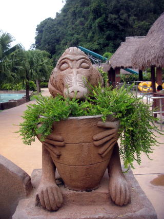 | 1月27日から1月29日までイポーへ遊びに行った。 @ 街はマレーシアで3番目に大きな街だが、KLと比較すると小さな町だ。ペナンのジョージタウンとよく似ていた。 ![]() 泊まったホテル(エクセルシオール) ホテルの前にオーバーシーレストランが ホテルは電話で予約した。ツインベットルームで、朝食・税・サービス込みでRM148(約5千円] 夕食は二日目に雨が降り、二日連続で向かいのオーバーシーに行った。徒歩圏内に大きなショッピングセンターもあり、便利なところだ。 A 二日目に水と温泉プールのある、Lost World Of TAMBUN と云うテーマパークへ行った。 ![]() クチンに迎えられて 1匹増えたのかな 10時オープンの予定で行ったが、平日は11時だったので、近くのSANWAY CITY を見に行った。 ![]() ブロックを組み立てた様な街並み サンウエーカレッジと云う学校もある スパーのGAIANT が入ったショッピングセンターもあり、多くの住宅が建設中だった。 ![]() アドベンチャーリバー 子供に帰って大きなチューブで1周 ![]() 途中で水掛けをする 大きな蛙も 全身ずぶ濡れになりながらチュウブで一回り。自分の写真は撮れない。 ![]() こんな景色も この動物は何? ![]() 温泉デース こんなことする人は日本人だけ? 敷地内にホットスプリングがある。広い温泉を借り切り。ここも水着を着て入る。 ![]() マレーの虎? ハリマ王 タイガーのショウーがあっても誰も来ない。我々2人だけで餌やりを見た。 B 翌日、中国人が作った洞窟寺院を見に行く。 ![]() ペラ・トンの入り口 12.8mの観音様 裏山の山頂へは、122m385段の石段があるが、時間の関係もあり途中でダウンした。 ![]() ケ・ロッ・トン(極楽寺) 極楽に続く裏庭? 此処へ来れば極楽へ行けるかも?裏には綺麗で大きな庭があり、極楽はこんな所かな? ![]() サン・ポ・トン 右手に綺麗な庭園がある サン・ポ・トンは行き、帰りのバスからちらりと見えた。近くで名物のポメロを沢山売っていた。 イポーへの行き方。 プトラヤのバスターミナルの77番ブースで SRI MAJU のバスチケットを買う。バスは市内迄行く。約3時間 RM17 他のバスは郊外のターミナル迄。エクセル・シオールまでタクシーでRM5。約5分 ロストワールドまではホテルからタクシーで約20分 RM10 帰りは事務所で呼んでもらう。 ホテルでクーポン券を貰うと入場料が安くなった。RM18.9 お寺巡りはタクシーで1時間RM25 3時間あれば十分だろう。 ロストワールドだけだとKLを朝早く出ると日帰りも可能。 (高橋一雄・公子 記) |