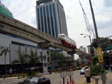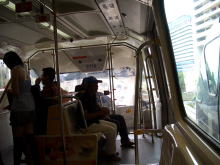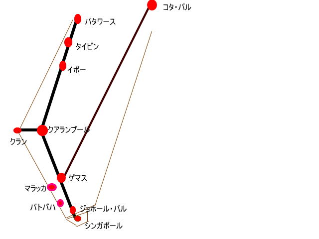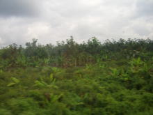 線路は続くよどこまでも。快適な乗り心地である。新幹線のような早さは無いが、風景の流れが心地よい早さなのだ。しかも、30分も走ると、高層ビルは消え、ゴム園か、椰子の林が続く。熱帯雨林の濃い緑と空の青さ、それに雲の白さがどこまでも続いていく。