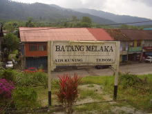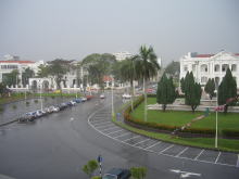 | イポ駅前に、イポの木がそそりたっている。イポという地名は、このイポの木から来ている。昔、現地人がこの木から取れる猛毒を矢じりに塗って狩りに使っていたが、当時の王様の暗殺にこれを使ったことから、ぜ〜んぶ切り倒しちゃったそうです。今ではイポ駅の前庭に、この木がたった1本