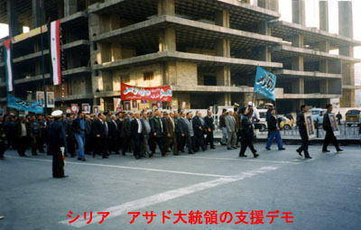 私がシリアに行った時は、アサドの信任投票が行われる前で、国中アサド賛歌が流れ、アサドをアピールするためにダマスカスだけで75,000人を動員するデモが行われ、市内の