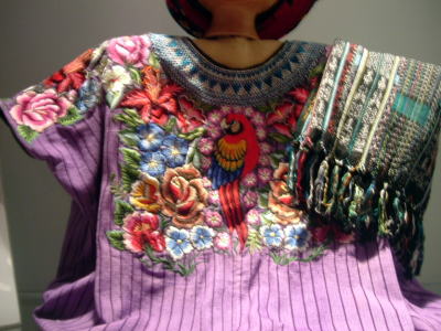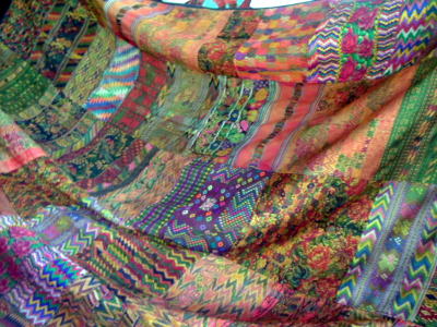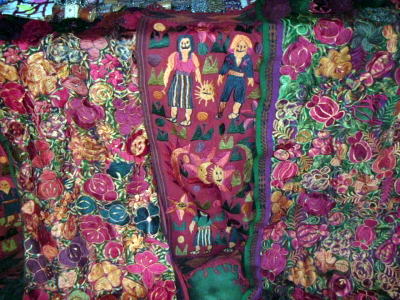 | パナハッチェルからボートで対岸のサン・ペドロ・ラグーナに行く。インディオが暮らす小さな村だが、この村では珍しく白いブラウスと紺の絣のスカートを着た女性が多く見られるが、絣のスカートはタイにある木綿の紺がすりに似ている。 サンチャゴ・アティトランはこの周辺ではパナハッチェルに次ぐ町で、民芸品店も多い。この村の男性は白地にカラフルに刺繍した美しいパンツを履いているが、刺繍の柄や織物の柄にも全てその村に伝わる意味があるそうだ。 女性は長い紐をターバンのように頭に巻いて帽子にしておりユニークだ。 サンタ・カタリーナ・パロポ と サン・アントニオ・パロポ へはコレクティーボという軽トラックに乗っていく。サンタ・カタリーナは紫を基調としたウィピルで、織りかたは他の村に比べて単純な幾何学模様が多い。サン・アントニオは青、赤が基調で美しいウィピルを着ていて、この村にはかなり上等な織物がある。 湖周辺の村々は、各村ごとにそれぞれ色やデザインが大体統一されたウィピルを着ているが、これはスペイン統治時代にスペイン人が一目でどの村の人間か分かるように色や柄を指定したのだそうだ。統治以前はもっと各自自由に好きな色や柄を着ていたのだろうが、人の嗜好まで規定する統治の方法には疑問を感じる。 パナハッチェルの500m上の山間部にソロラという町がある。火、木、金には市が立ち、おびただしい数の店が出る。ここには周辺の村々から伝統のウィピルを着た人たちが大勢集まって来て、まるで色の洪水だ。市に行くバスも超満員でギコギコと坂を登っていく。市では野菜、日用品、衣類、古着が安く売られていて、この市がこの地方の先住民の生活の場であることが伺われる。 (目次へ) |