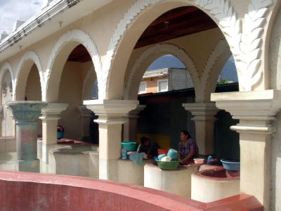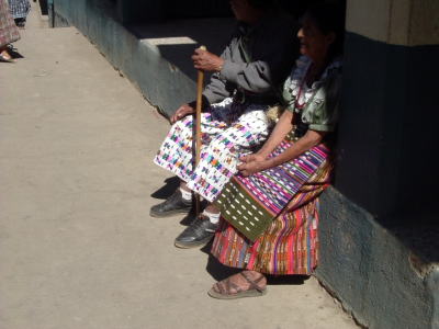 貫頭着のような上着だが、1枚織るのに4ヶ月かかるというのも納得できるし、当然値段も高い。特に結婚式に着る裏表が全く同じ織りで糸が渡っていないものは、特殊な技法でとても高い。1着買っても日本で着られないので小片を値切って買った。 村全体は特に何もなく、村のあちこちに洗濯場があり、オバサンたちが美しいウィピルを着て洗濯している。あれほど手間がかかったものを普段に着るなんて勿体無いとおもうのだが、彼女たちにはよそ行きも普段着も区別はないようだ。写真を撮ろうとすると嫌がってなかなか撮らせてくれない。
