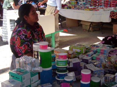 商店街にはビーズ等のアクセサリー、ウィピル(現地女性の刺繍された上着)、織物などの手工芸品の店やおしゃれなレストランが並び、壊れかけた建築物と好対照をなしている。 市場は広大で数え切れないほどの手工芸品の店や、日用品、野菜、果物が売られている。特に織物はすばらしい。 アンティグアからバスで20分ほどのサン・アントニオ・アグアカリエンテという先住民の村に織物を見に行った。この村のウィピル(現地女性の上着)はグァテマラ中で最も華やかで、鳥や花が美しく織り込まれていてすばらしい。