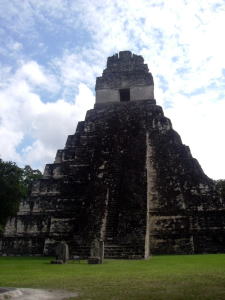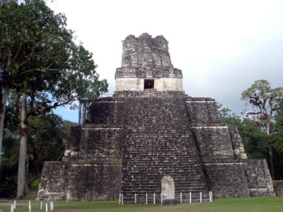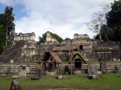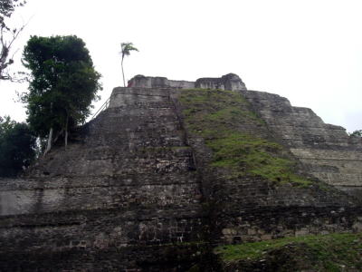 | パナハッチェルからグァテマラシティまでバス。シティからティカル遺跡への入り口の町フローレスへTACA航空でフライト。迎えの車でホテルへ。湖の前の気持ちいいホテルだった。 車でティカル遺跡へ。ジャングルの中を1時間走ると周りに土に埋もれた多数の遺跡が見えてくる。遺跡の上には大木が生え、草に覆われ長い時の流れを感じさせる。 ティカルはBC300〜800年頃に栄えたマヤの遺跡で、周辺には3000を越す遺跡が散在しているそうだが、大部分はまだ埋もれたままで順次発掘中とのことだ。 中心となる遺跡は7つの神殿からなり、周囲2Kmの範囲にある。グァテマラ南部の気候とは異なり湿度が高く暑いので見学にも体力が要る。 神殿となるピラミッドはメキシコやエジプトの傾斜よりきつく、天を突く様で厳しく美しい。