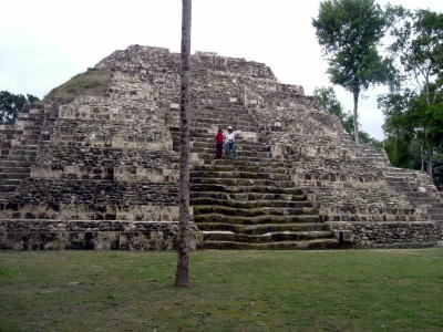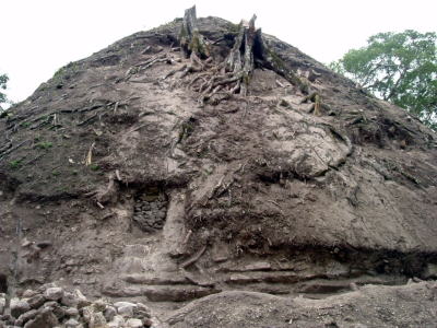 | ヤシャ遺跡はティカルの東にあり、さらに遠くジャングルの中の未舗装の道を2時間近く走る。ここは遺跡発掘を手がけだしたばかりという状態で、すっかり土に覆われた土饅頭のような遺跡が多数見られる。 以前アメリカのテレビ番組でこの一帯が取り上げられたせいで、多くのアメリカ人の若者がキャンプしていた。 まだ案内板も何もなく、ガイドなしではとても回れない。このような遺跡がまだまだ周辺のジャングルに埋もれてしまっているなんて、自然の力の大きさを感じてしまう。これらの遺跡が再び日の目を見るのはいつの事になるのだろう。